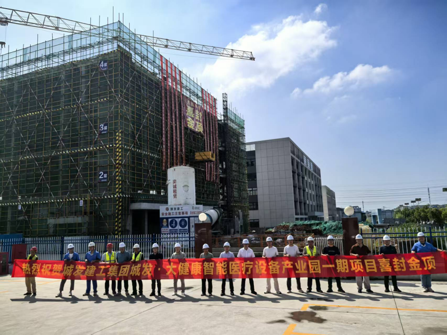 城發(fā)·大健康產(chǎn)業(yè)園項(xiàng)目綜合樓、1#生產(chǎn)車(chē)間主體結(jié)構(gòu)順利封頂